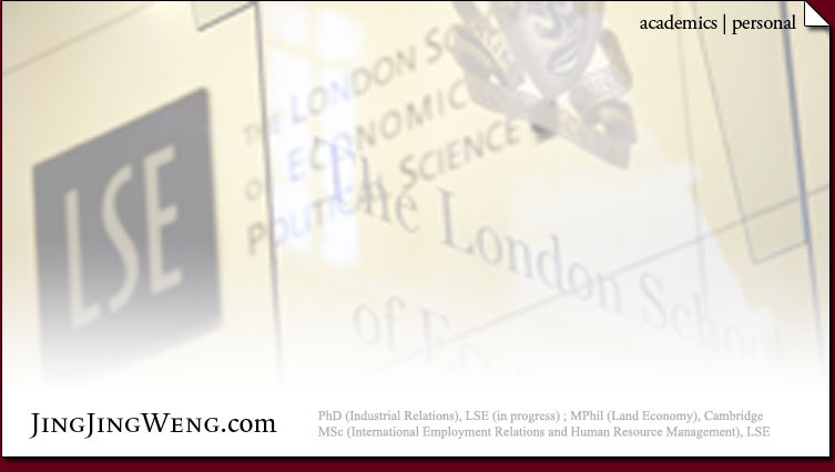 My name is Jing Jing Weng. Welcome to my personal website! I am from Zhejiang Province, China. I am now a PhD student in London School of Economics in UK.